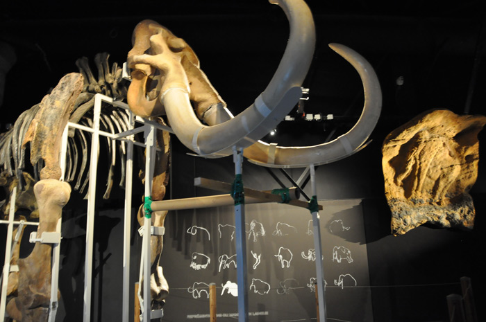 «Le mammouth ne se chasse pas, ne se consomme pas des hommes de cette époque, il est peu représenté sauf peut être à la grotte de Rouffignac en Dordogne appelée Grotte aux 100 mammouths ou à Chauvet où nous avons deux représentations de ce géant des glaces… le rôle du mammouth reste encore énigmatique», poursuit Cécile Sarrail avant de nous présenter le fac-similé de Dyma, un bébé mammouth âgé de 4 000 ans exhumé du permafrost Sibérien en 1977 en excellent état de conservation dont l’original est présenté au musée de St Petersburg.
