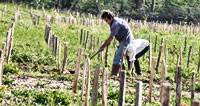 Des vignes au pied des remparts de l’abbayeEt c’est au pied du rempart de l’abbaye qu’ils ont planté 4 400 pieds de raisin de table Exalta, obtenu par croisement entre muscat de Hambourg et Perlette, reconnaissable à son grain doré sans pépin, très apprécié pour son goût prononcé de muscat.