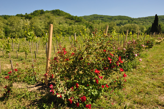 Quoiqu’il en soit pour la maitresse des lieux les roses sont une passion qu’elle cultive depuis de longues années. Elle a choisi avec soin chacune des espèces qu’elle a plantées dans son vignoble et en connait l’histoire sur le bout des doigts. Une passion qu’elle n’hésite pas à faire partager: