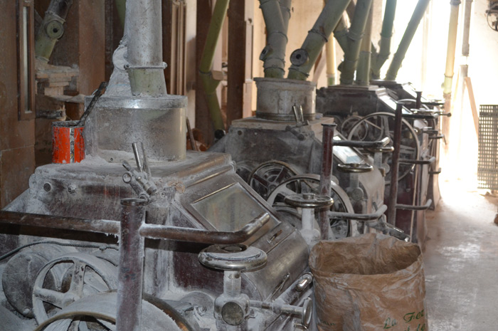 Deux procédés de fabrication coexistent afin de ne pas mélanger les variétés de farine, puisqu’un autre mécanisme lui actionne des turbines qui broient le grain avant que la tamiseuse ne produise une farine «bonne, pure et nette»