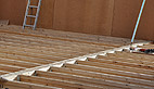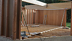 La construction de cette maison bois a débuté il ya quinze jours en atelier où les murs et les huisseries ont été fabriqués et depuis lundi deux artisans ont commencé la pose des différents éléments: «d’ici fin octobre elle sera hors d’air et hors d’eau, les menuiseries seront en place, le bardage extérieur, la toiture et sa couverture… tout l’extérieur sera terminé, il ne restera que les aménagements intérieurs»