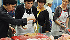 Géraldine Portolès est satisfaite de son groupe: «ils sont très attentifs, posent des questions. Avec cet atelier ils pourront consommer les foies qu’ils ont préparés pendant le réveillon.