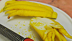 Au rayon des agrumes, le chez utilisera aussi de la «main de Bouddha», une variété d’agrumes aromatique râpée sur le turbot aux agrumes. «J’ai la chance d’avoir ici un bon poissonnier et un primeur qui va au marché-gare et travaille avec de petits producteurs… ça fait 20 ans que l’on fonctionne ensemble !»