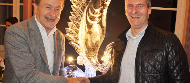 Philippe Faur est venu avec la sculpture en glace hydrique qui a largement contribué à son premier prix au VIe Open des desserts glacés (équivalent du Championnat d’Europe) qui avait lieu le week-end dernier au salon international de la restauration, de l’hôtellerie et de l’alimentation, le Sirha, à Lyon.