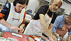 Mais Marie-Hélène, Christine ou Philippe n’ont pas beaucoup de temps, en quelques heures à peine ils entendent échanger trucs et astuces auprès de ce sushi – man: «il y a une multitude de petits détails qui font vraiment la différence et seule la pratique permet d’acquérir une certaine aisance, mais vous verrez, ça vient tout seul…» précise Laurent pour rassurer ses élèves un peu empêtrés dans la découpe des filets de saumon.