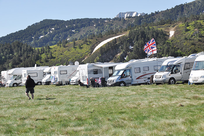 Plusieurs centaines de camping-cars et de tentes ont envahi le col de Pailhères à près de 2001 mètres d’altitude.