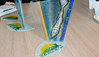 Le magnifique trophée, dans ses versions or, argent et bronze, qui sera remis aux 3 premiers du podium, a été réalisé par Marc Kniebihler verrier à Brassac.