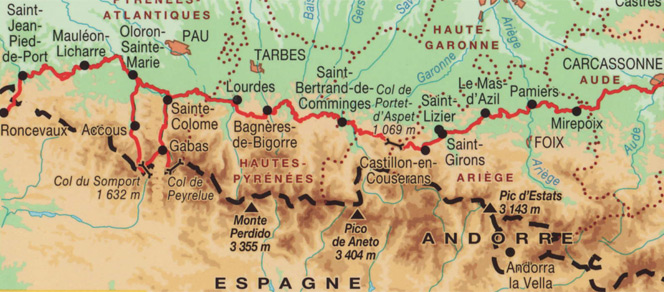 Cet itinéraire, le plus sudiste des Chemins de Saint-Jacques offre plus de 30 jours de randonnée entre Carcassonne, Lourdes jusqu'à Roncevaux, étapes vers Saint-Jacques de Compostelle, ressuscitant cette voie secondaire bel et bien empruntée par les Jacquets des siècles durant.