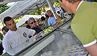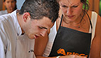 Dès 10 h du matin les candidates ont retrouvé le Masterchef au départ du marché des producteurs dans le parc du Casino. Et c’est guidé par Florian Laffite, médaille de bronze des meilleurs apprentis de la Région Midi-Pyrénées, que pendant près de deux heures le petit groupe a goûté et sélectionné les produits: «je n’ai pas encore d’idée précise du menu, mais je vais choisir des produits typiquement ariégeois que je vais essayer de mettre à l’honneur, en tout cas de les respecter» précise Marc très attentif à ses rencontres sur le marché: «cela me permet aussi de découvrir des saveurs qui me donnent des idées de recettes pour plus tard»