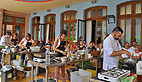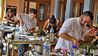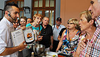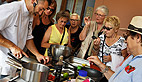 C’est ensuite sur le marché de plein vent sur la place de la mairie que le petit groupe s’est dirigé, chacun muni de son panier en osier, pour compléter la liste des courses. «Nous avons en tête notre menu définitif, on s’est fait plaisir, rendez-vous tout à l’heure sur la terrasse du Casino pour une démonstration en public»