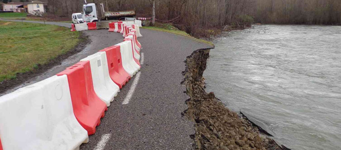 À la suite des cumuls élevés de précipitations des 26 et 27 février, la RD 134 avait dû être fermée à la circulation au niveau du «Cap de la Lane». Le Salat en crue a entraîné une érosion rapide de la berge soutenant la chaussée et la disparition totale d'une partie de son accotement. Les premiers signes d'une érosion préjudiciable à la route avaient été obersvés après la crue de fin janvier 2014.