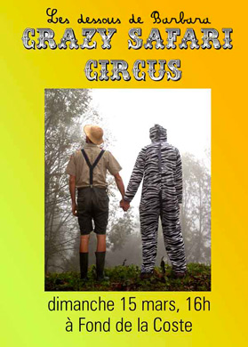 En résidence de création au lieu-dit Fond de la Coste depuis une semaine, la Cie « Les Dessous de Barbara » vous invite en safari... le dimanche 15 mars à 16 h pile... un voyage qui ne dure que 35 minutes, alors attention à ne pas rater le départ !