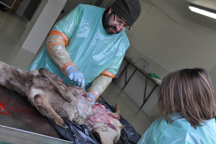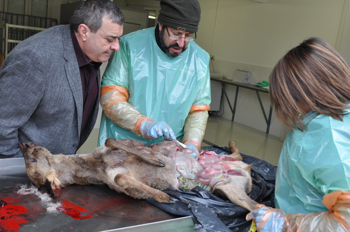 Cette semaine il s’agissait d’une autopsie sur un chevreuil tué lors d’une chasse sur le piémont ariégeois. «Quand on tire le grand gibier, c’est souvent de loin et on ne distingue pas les détails, explique le vétérinaire.
