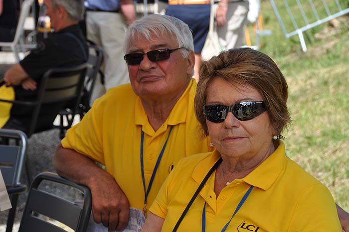 Au détour d’un parasol, Raymond Poulidor et un groupe d’amis suivent la course sur écran géant: «c’est une étape terrible, il y aura des dégâts, ce col (Pailhères) est presque plus dur que le Tourmalet… les prétendants à la victoire peuvent ici perdre le Tour»