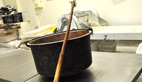 Pendant les jours qui ont précédé, Joël Tartié a expérimenté ses recettes n’hésitant pas à ressortir le chaudron de cuivre et la traditionnelle «Toudeille» en bois de sapin (toudeilho en occitan) afin de réaliser le millas qu’il a revisité à la «façon de Jeannne», sa grand-mère: