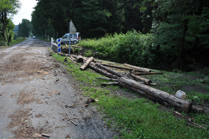 En se dirigeant vers Fougax et Barrineuf qui reçoit un affluent de l'Hers vif, les pluies ont décroché des pans entiers de colline, et la végétation dans les champs est couchée par la récente présence de l'eau. Sur place un bien triste spectacle nous y attend: le long de la route qui traverse Fougax, les riverains constituent devant chaque habitation des tas de boue, de cailloux, de végétaux.