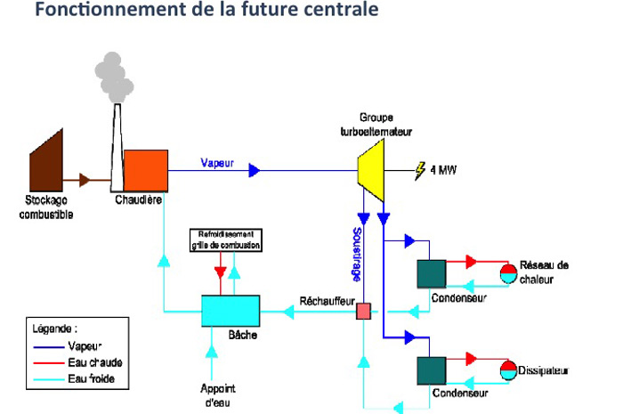 Initialement cette centrale de cogénération était prévue pour être couplée à un réseau de chaleur porté par les collectivités territoriales du département, elle devait alimenter le pays de Foix.
