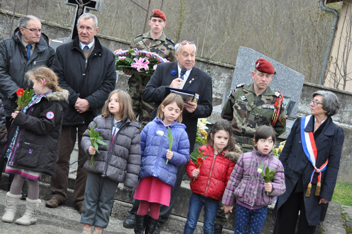 Après le dépôt de gerbes les enfants de l’école primaire ont fleuri la tombe du poilu et le monument aux morts.