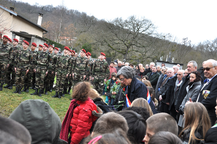 Nous honorons aujourd’hui tous nos morts car le sang versé de Julien Langrenez est le même que celui de ceux de 1944 et plus récemment celui des Corréa, Marsol, Garwin, Morillon, Hugodot et le dernier Cédric Charenton sans oublier Conrad Donald […] vous jeunes et nous anciens gardons présent ce devoir de mémoire» concluant par une phrase de Fréderic Nietzche: «le futur appartient à celui qui a la plus longue mémoire»
