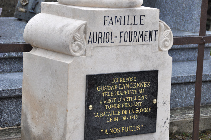 | Mais qui était Julien Gustave Langrenez? Né à Bénagues le 24 octobre 1898 était encore enfant quand il a été mobilisé au 41ème Régiment d’Artillerie. Il n’avait pas 18 ans quand il fut tué le 4 septembre 1916 lors de violents combats à Meaucourt dans la Somme. Lorsque le conseil municipal de l’époque fut interrogé pour savoir si la famille voulait récupérer la dépouille, n’ayant pas de parenté, c’est à l’unanimité que le conseil municipal de l’époque a décidé de le faire reposer dans le petit cimetière de Bénagues. |