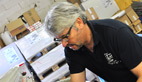 «Le Numérique nous donne la possibilité de réaliser de petites quantités… nous avons fait l’acquisition d’un traceur UV qui peut tirer à l’unité sur une lèse de 1,60m et jusqu’à une épaisseur de 5cm. La région Midi-Pyrénées nous a aidé à faire cet investissement par le biais d’un contrat d’appui. C’est aussi pour nous une manière de nous lancer dans une nouvelle activité car avec un tel investissement on peut se diriger vers la décoration et la personnalisation de panneaux (portes isoplanes, panneaux en alu ou en bois…) sans pour autant tourner le dos à notre cœur de métier»Un métier en pleine évolution mais qui demande d’importants investissementsIls ne sont plus que trois imprimeurs dans le département de l’Ariège et chez Philippe Peyre c’est un métier qui se transmet de génération en génération: «L’imprimerie évolue mais les quantités s’amenuisent, nous sommes passés de 5 000 à 3 500 exemplaires, des pertes à compenser avec d’autres produits comme la production numérique et d’autres savoir-faire»