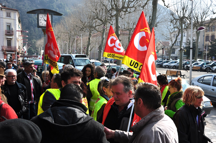 Selon les militants syndicaux réunis à Foix ce matin «Après les réformes régressives de l’ANI et la contre-réforme des retraites, le gouvernement veut aller plus loin dans sa politique de cadeaux au patronat et de casse des conquêtes sociales. Le pacte dispenserait les patrons des cotisations sociales des entreprises destinées à la branche famille, cela représente 35 milliard d’euros!