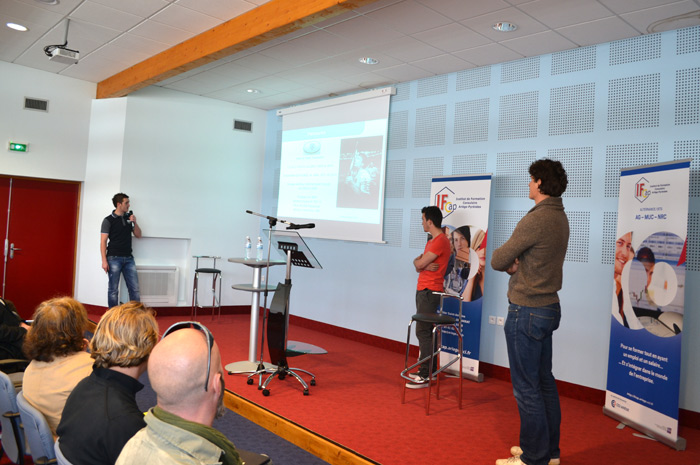 Faire un parallèle concret entre rugby et monde professionnelPour Thomas et Florian, tous deux joueurs de rugby et membres de l’association GEMACOM et du Conseil Régional des Jeunes, à l’initiative de cette rencontre, c’est d’abord un plaisir de partager ce moment avec 85 de leurs collègues de deuxième année issus des trois sections de BTS mais aussi des jeunes venus avec leur professeur du Lycée Gabriel Fauré et le champion de rugby.