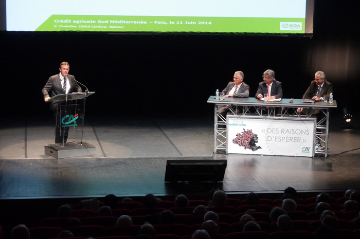 Après Michel Serres à Perpignan en 2013, Vincent Chatellier hier à FoixLe public a ensuite pu assister à la conférence de Vincent Chatellier, ingénieur de recherche à l’INRA de Nantes et Directeur du LERECO (laboratoire de recherches et d’études économiques). Le chercheur a évoqué le défi alimentaire mondial et la place de l’agriculture française dans l’agriculture mondiale… là aussi des raisons d’espérer.