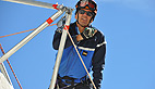 Pendant ce temps le matériel est installé: bipode, treuils, cordes, perche dans laquelle sera installée le blessé en gardant toujours l’axe tête, cou, tronc. Beaucoup du matériel que nous utilisons là est le fruit de nos recherches au centre national d’instruction de ski et d’alpinisme de la gendarmerie de Chamonix»