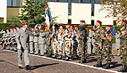 Sur la place d’arme sous les ordre du commandant en second, le lieutenant-colonel Mercury, la musique des parachutistes de Toulouse, la Compagnie de commandement et de logistique du capitaine Canniaux, la Compagnie d’éclairage et d’appuis du capitaine Maynié, la 1ere Compagnie de combat aux ordres du capitaine Fiamenghi, la 2e Compagnie de combat du capitaine Bouvier, la 3e Compagnie du capitaine Briganti et la 4e Compagnie de combat du capitaine Houette, suivie de la 5e compagnie de réserve du capitaine Crété ainsi que l’antenne Pamiers de la base de défense aux ordres du capitaine Jamroz.