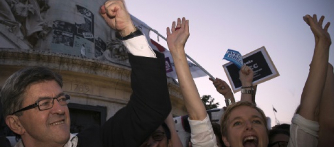 Regroupés autour de la statue de la République sur le socle de laquelle s'était hissé Jean-Luc Mélenchon, ils ont appelé à la solidarité avec le peuple grec et fustigé la chancelière allemande Angela Merkel et le FMI avant d'entonner l'Internationale.