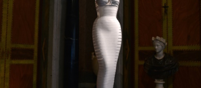 Des robes au profil effilé jouxtant des statues antiques sur fond de marbres polychromes: "la sculpture souple" du styliste franco-tunisien Azzedine Alaïa, hommage à l'élégance féminine, est la dernière "invitée" de la Villa Borghese de Rome.