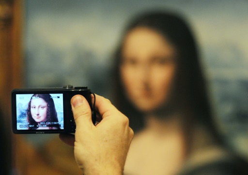 L'emblématique tableau de Léonard de Vinci est ici adapté numériquement à taille réelle. Grâce à sa Kinect, périphérique captant les mouvements et les images habituellement utilisé dans les jeux vidéos, la Joconde "tient compte" de ce qui se passe autour d'elle et réagit, selon son "humeur", explique Jean-Claude Heudin, directeur de l'Institut de l'internet et du multimédia de Paris-La Défense, qui a travaillé sur l'intelligence artificielle et la modélisation du célèbre portrait.