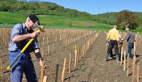 La vigne, une grande école de patienceC’est sous les auspices de Philippe Babin qui a participé activement il y a une vingtaine d’années au renouveau de la vigne en Ariège, que l’association appaméenne a choisi les cépages: 2700 pieds de Gamay, un cépage du Beaujolais que l’on retrouve dans la Loire mais comme l’indique notre viticulteur ariégeois, «il s’agit là d’un cépage endémique de l’Ariège qui existait ici avant la disparition du vignoble. Il était intéressant d’en replanter pour perpétuer la tradition. Le Gamay propose des vins pas forcement d’élevage qu’il faut garder en barrique pour qu’ils vieillissent, ce sont des vins à consommation rapide, correspondant parfaitement à l’envie de l’association de planter une vigne pour en proposer le vin dans le cadre d’animations festives sur le site de l’abbaye»