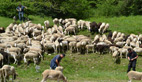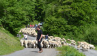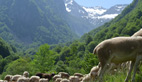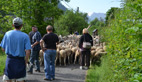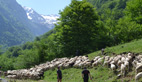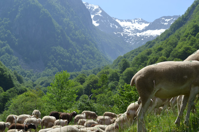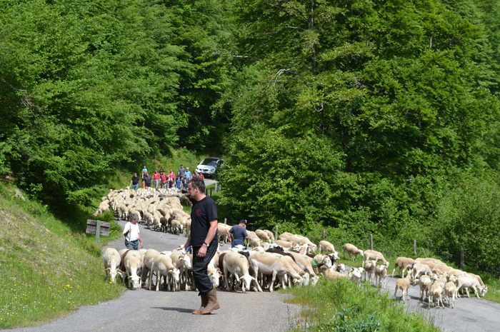 Partis la veille de Lescure, Vincent et Guy Faur à la tête de leurs troupeaux d’ovins de près de 1.000 bêtes ont poussé un peu plus loin encore. Guy emmenant ses quelques 500 bêtes de part les routes et sentiers vers le cadre somptueux du cirque de Campuls sur l’estive de Bethmale.