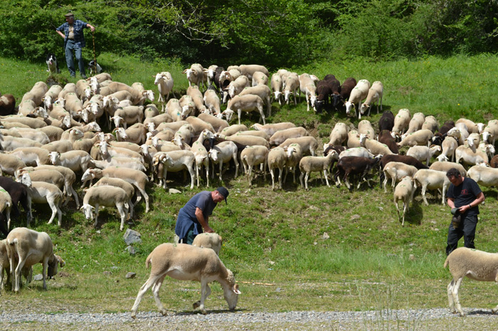 A Sentein, ce samedi les troupeaux sont partis tôt le matin direction les estives de Laspe, La Plagne et de l’Izard. Une journée dans l’esprit de la philosophie que souhaite donner les organisateurs des Transhumances en Couserans, Simon Lompède en tête, à cette grande fête de la vie pastorale.