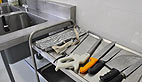Les travaux de cette salle de nécropsie ont été réalisés pour une partie en interne, en régie (pour la partie maçonnerie et ferronnerie). Elle permet d’accueillir un public d’une vingtaine de personnes pour assister aux autopsies. Le revêtement du sol à base de résine a été réalisé gracieusement par l’entreprise Maestria.
