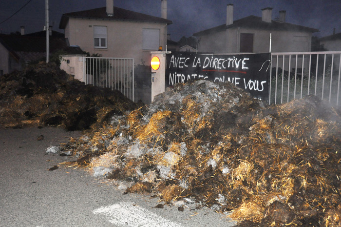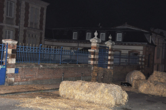 Aux alentours de 5h30 du matin une trentaine d’agriculteurs de basse Ariège (JA et FDSEA) ont élevé des murs de paille sur les grilles de la sous-préfecture et déversé quatre remorques de fumiers devant le trésor public. Sur les banderoles il était question de zones vulnérables et de directive nitrate. Les services de la mairie de Pamiers ont mobilisé dès 7h les engins pour dégager la voirie et libérer la sous-préfecture de ces balles de paille de 500kg chacune.