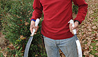 De l’héliportage à la taille au sabre, Michel Vuillier nous invite une fois de plus à faire le grand écart. Sur une autre parcelle, deux opérateurs manient un curieux engin à la lame incurvée et effilée, c’est un «couteau à sapin».