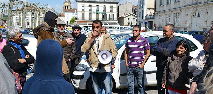 Un Comité de Soutien aux Habitants de Caravanes de Saint-Girons s’est formé qui a apporté son soutien aux Gens du Voyage et fait monter la pression, utilisant pour ce faire les réseaux internet. En ce lundi matin, ils étaient avec M.Patrac, «Pouet», sur l’aire d’accueil du Pont du Rat puis jusqu’à la mairie de Saint-Girons.