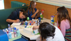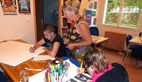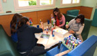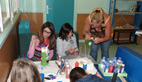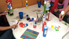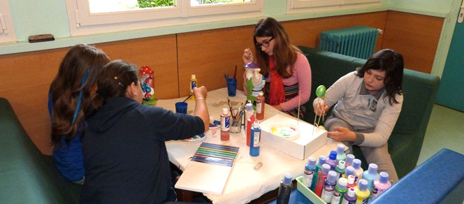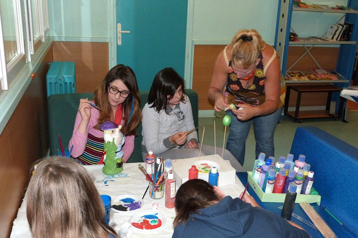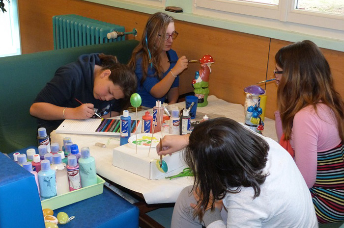 Romane peint un tableau Littel Marcel, Lucie des œufs à suspendre au plafond, alors que Maily et Rachel peignent «les nains de la maison des jeunes, des nains customisés pour l'occasion»