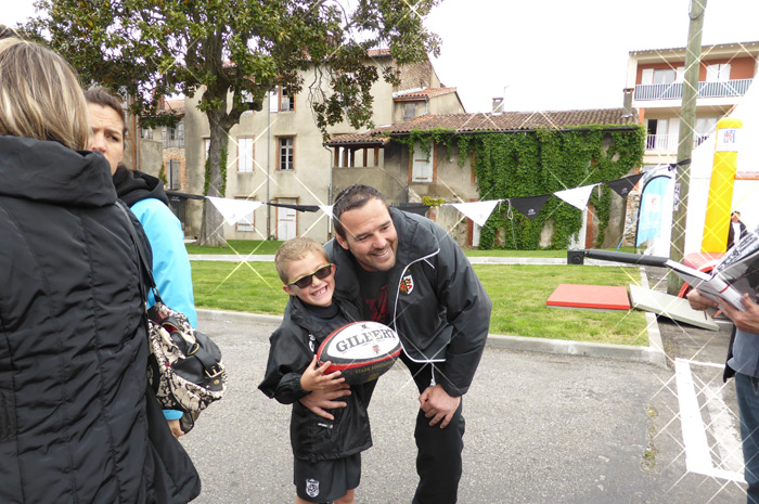 Trois Grands, du club phare de la région, le stade Toulousain, sont venus à la rencontre de ces jeunes pousses. Parmi un public nombreux, on pouvait faire dédicacer un livre, un ballon ou poser aux cotés de David Gérard. Le palmarès de ce garçon est plutôt impressionnant: H.CUP 2003/2005, finaliste du championnat de France en 2004, champion de France Pro D2 en 2009 avec le Racing Club de Paris, champion de France en 2011 de fédéral 2 avec Marseille, voilà un homme qui a touché du Bois dans sa carrière! Aujourd’hui, dans le staff du Stade Toulousain, il entraine les féminines de Fonsorbes qui évoluent dans l’élite 2.