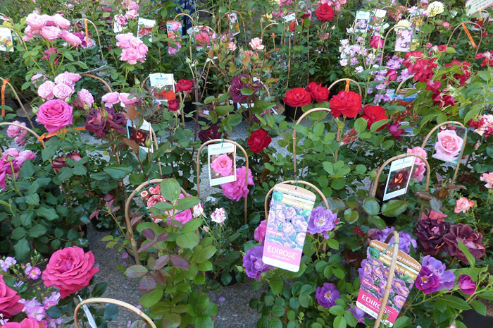 Pas le temps de rêvasser donc, de nombreux passionés se pressaient sur les stands. Sur les étals, les pépiniéristes proposaient un très large choix de rosiers dans toutes les variétés et les couleurs. Du blanc pur au jaune angélique, en passant par les roses tendres allant jusqu'au rouge flamboyant.
