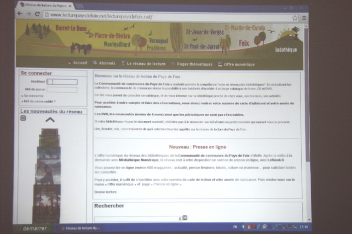Mardi 20 mai, Thomas Fortin, conseiller municipal de Foix délégué à la Communauté de communes et Julien Moreau, bibliothécaire, présentaient dans les locaux de la Communauté de communes du Pays de Foix le nouveau service de presse en ligne proposé sur le site lecturepaysdefoix.net.