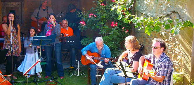 Près de l'escalier, de 15h35 à 16h10, place à l'Atelier Philippe, avant que Cynthia, jeune chanteuse native du village, n'investisse les lieux. RASB, Hélène, les Clampins, et Véronique, tout à tour créeront l'ambiance, qui sous un porche, qui dans le jardin d'un villageois.