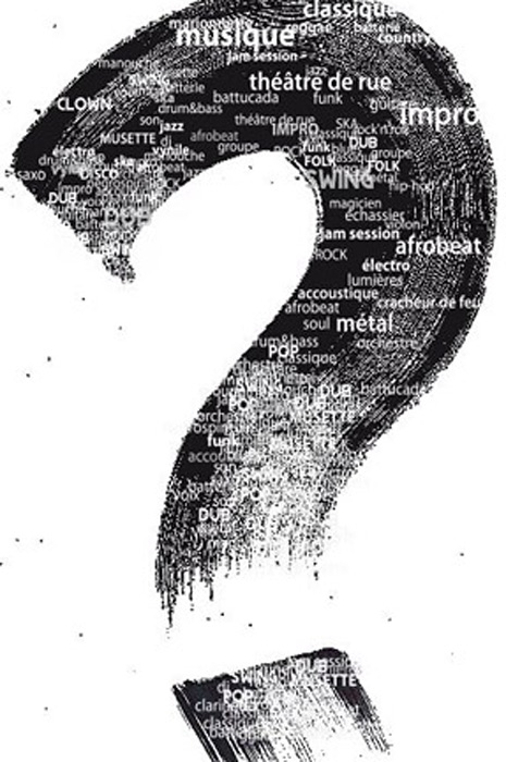 Des points «?» marqués au sol permettront à tous les musiciens qui le souhaitent de s'installer et de jouer! Ces points sont à chercher un peu partout en ville... Pour limiter par ailleurs, la consommation excessive de papiers, un QR code à flasher avec son smartphone sur le document générique donnera tous détails supplémentaires sur les éléments de la programmation.