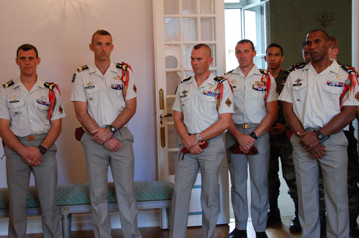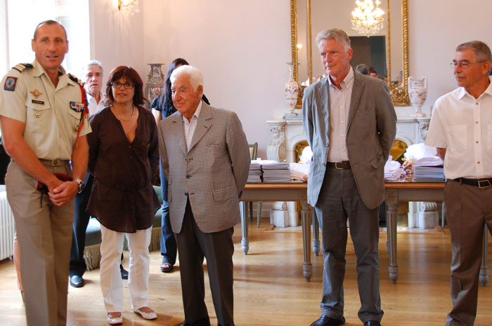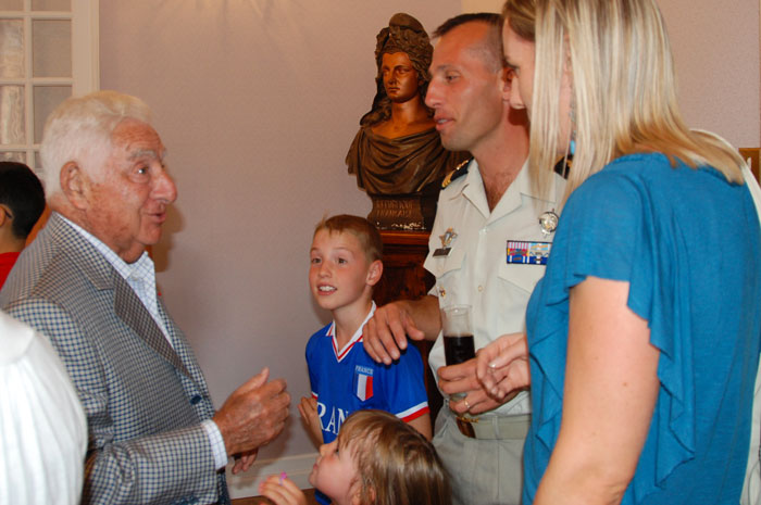 En l’absence du colonel Helluy, chef de corps du 1er RCP, c’est le lieutenant colonel Mercury, commandant en second qui a accompagné les nouveaux arrivants du 1er RCP à la réception organisée en Mairie comme il est de coutume depuis plusieurs années maintenant. Et c’est le Maire, André Trigano qui les a reçus, aux côtés d’élus.