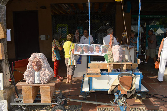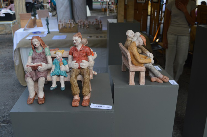 Découvrir nombre d’artistes talentueux, dont les sculptures métal de Joël Oulié (meilleur artisan de France) utilisant les outils de la forge pour créer des pièces en rupture totale avec la ferronnerie traditionnelle ou les sculptures bois de Daniel Haran et leur expression poétique, le regard surréaliste sur notre monde. Juste à côté, la vannerie de Laurence Nautré (Besset) et ses démonstrations de savoir-faire, comme celles de Gilbert Serres (potier à Montastruc-de-Salies) et son tour à la corde.