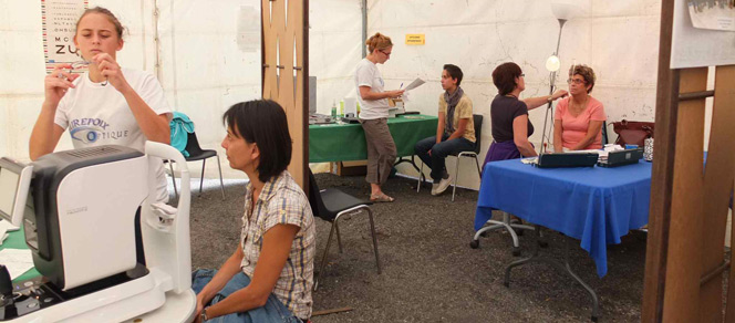 Après une large information du public concerné, par voie de presse, affichage et distribution de flyers sur les pare-brise des voitures pour informer les personnes intéressées, et avec le concours gracieux des opticiennes et l’orthoptiste de Mirepoix, des tests de vue ont été pratiqués de 9 h à 12 h et de 14 h à 18 h sous un chapiteau gracieusement prêté par la Communauté de Communes de Mirepoix.