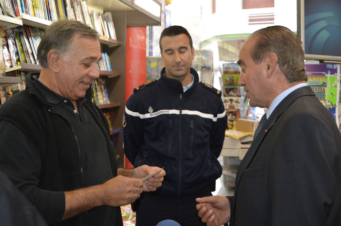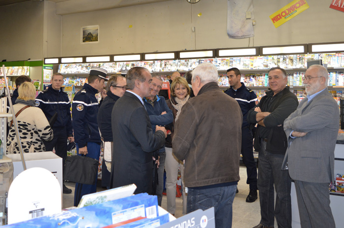 Après une conférence de presse, salle Avelana, gendarmerie, police, représentants des Chambres consulaires et élus se sont rendus chez certains commerçants afin d’apposer les premières vitro-phanies sur les vitrines.